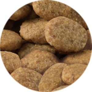 チキン、エンドウ豆、おから、サツマイモ、乾燥チキン、タピオカ澱粉、エンドウ豆プロテイン、ポテトプロテイン、セルロース、鶏脂(オメガ6脂肪酸・オメガ3脂肪酸源)、酵母エキス、ビール酵母、オリゴ糖、サーモンオイル(オメガ6脂肪酸・オメガ3脂肪酸源)、グルコサミン、クランベリーパウダー、ローズマリー、L-カルニチン、乳酸菌(EC-12)、コンドロイチン、コエンザイムQ10