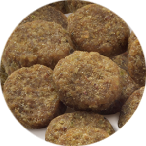サーモン、エンドウ豆、エンドウ豆プロテイン、サツマイモ、乾燥フィッシュ、タピオカ澱粉、ビール酵母、植物油、亜麻仁(オメガ6脂肪酸・オメガ3脂肪酸源)、酵母エキス、サーモンオイル(オメガ6脂肪酸・オメガ3脂肪酸源)、オリゴ糖、コンドロイチン、グルコサミン、クランベリーパウダー、L-カルニチン、乳酸菌(EC-12)、パン酵母(セレン源)、コエンザイムQ10